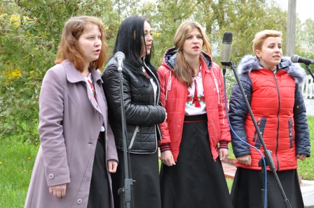 Аматори художньої самодіяльності Ю.Гаврилюк, О.Писаренко, К.Міщук, С.Гоцак, Л.Бахмацька вітали учасників Чорнобильської АЕС піснями.