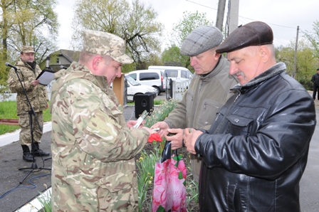 З вітанням та подарунками до присутніх звернулася начальник управління соціального захисту населення Кашперук Н.Я., від Аграрної партії «Перлини Поділля» , яку очолює Іващук С.П. виступила з вітанням та вручила грошову допомогу Медведева С.В., військовий комісар Новосядлий І.А. вручив пам’ятні медалі чорнобильцям.
